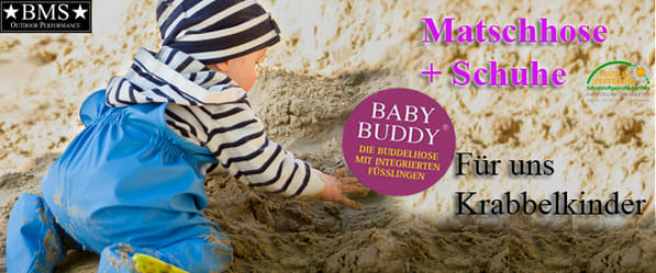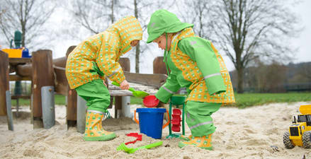 Tolle Kinder-Matschhosen, bunte Regenjacken, praktische Buddelhosen für jede Jahreszeit