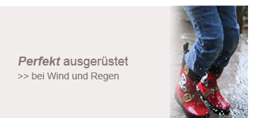 Ob nun auf Entdeckungstour durch den Garten, im Park oder auf dem Spielplatz. Nach einem Regenschauer ist die Wiese bzw. der Sand oft noch matschitg und nass. Diese Kombination hält aber unsere Kleinen keinesweg davon ab genau dort in die größte Pfütze zu springen, oder im glitzigen Sand perfekte Sandkuchen zu backen. Ausgerüstet mit der richtigen Regenbekleidung für die KIDS - kein Problem.