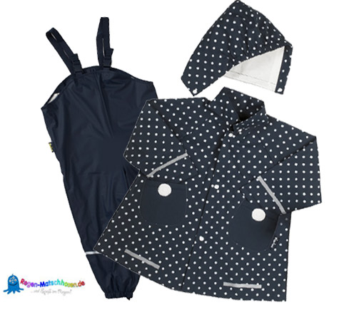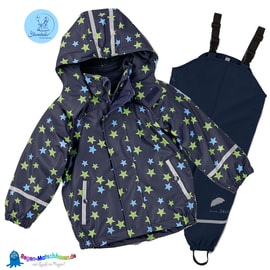 Regenjacke mit Sternen warm gefüttert passende Matschose in Marine |