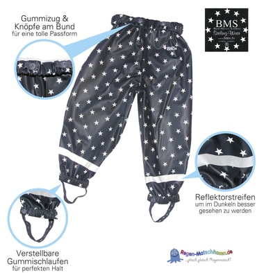 Regenjacke und Buddelhose von BMS im tollen Sternedesign Bundhose mit praktischen Gummizugbund Kinder Regenjacke mit Kapuze und Taschen |