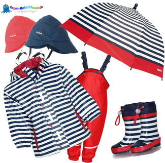 Hier ist von den Gummistiefel, über Matschhose und Regenjacke oftmals auch noch ein Regenhut bestens geeignet. Schön ist, das man alles in den Lieblingsfarben und Mustern der Kinder erhält. Wie hier von Sterntaler unser Regenset im Piratenlook. Und schon warten die Kinder voller Freude auf den nächsten Prasselregen um die Klamotten gleich darin zu testen.